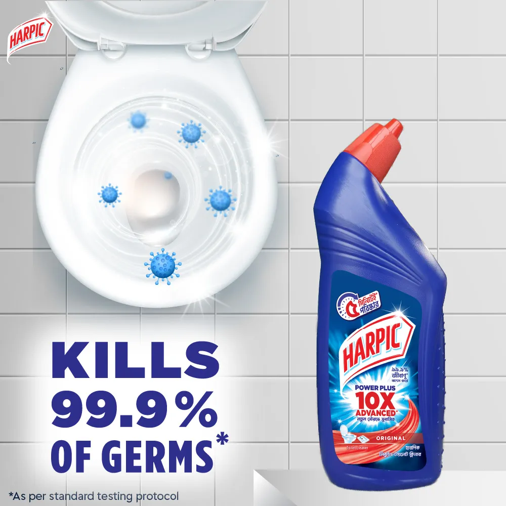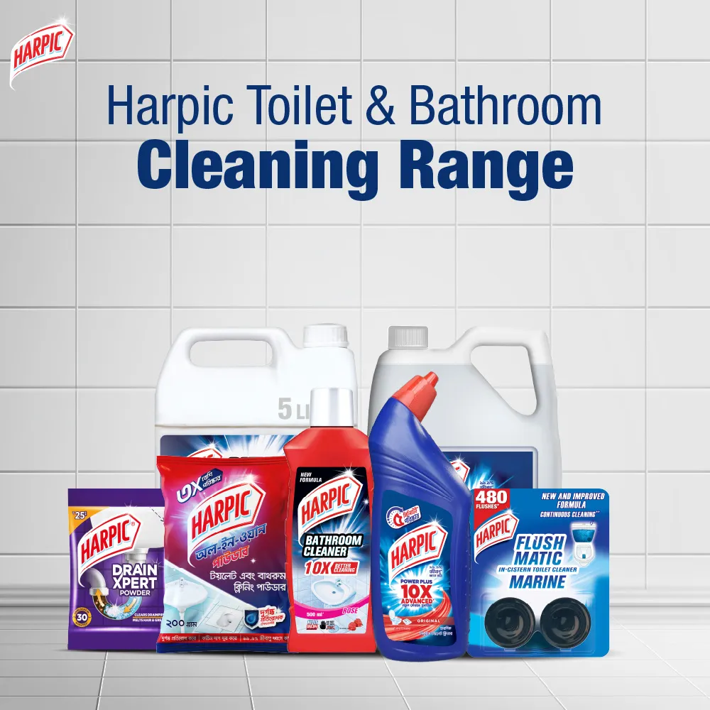 Harpic Toilet Cleaner Liquid 500ml is a specialized all-in-one product, which is the ultimate one stop solution for all your toilet cleaning needs. Unlike ordinary toilet cleaners Harpic Power Plus has a thick liquid formula that clings to the toilet surface to clean deeply from the rim to the u-bend. Harpic toilet cleaner removes 99.9% of germs.