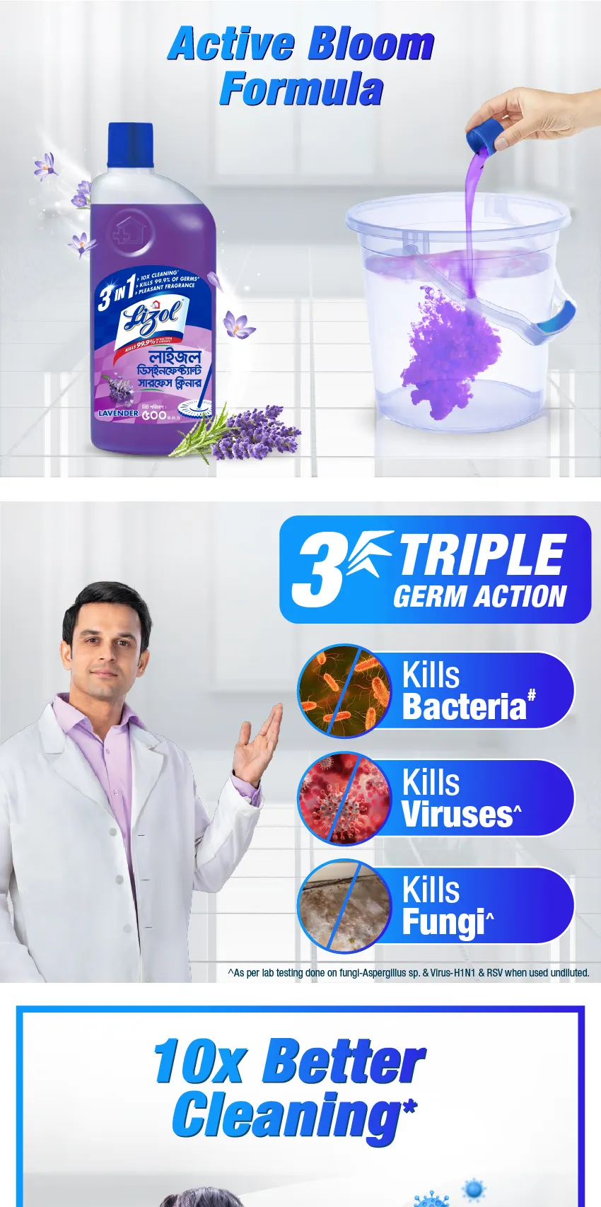 Usage Information: Mix 1 cap Lizol with water (half bucket) for cleaning home & bathroom surfaces. For kitchen, use Lizol directly without diluting with water.