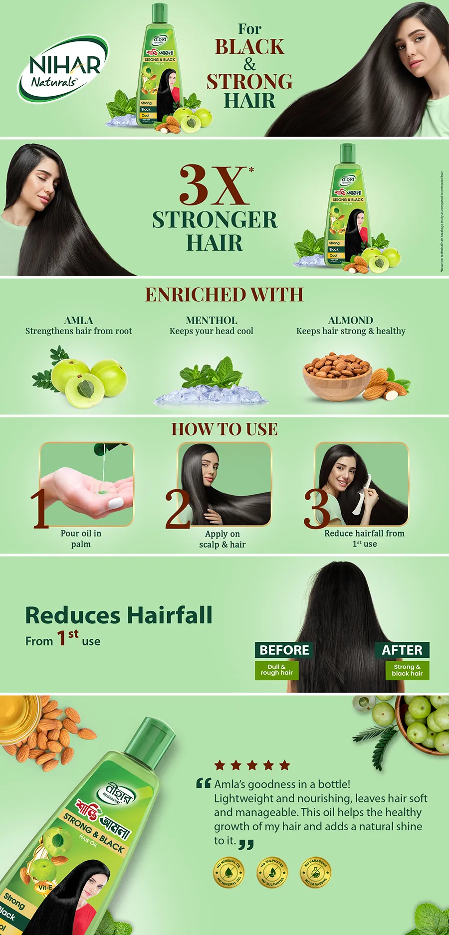 • Now get Strong and Black hair with unique ingredients of Nihar Shanti Amla Hair Oil. The oil also contains menthol which gives a cooling and relaxing sensation on the scalp. Nihar Shanti Amla Hair Oil is available in 175ml